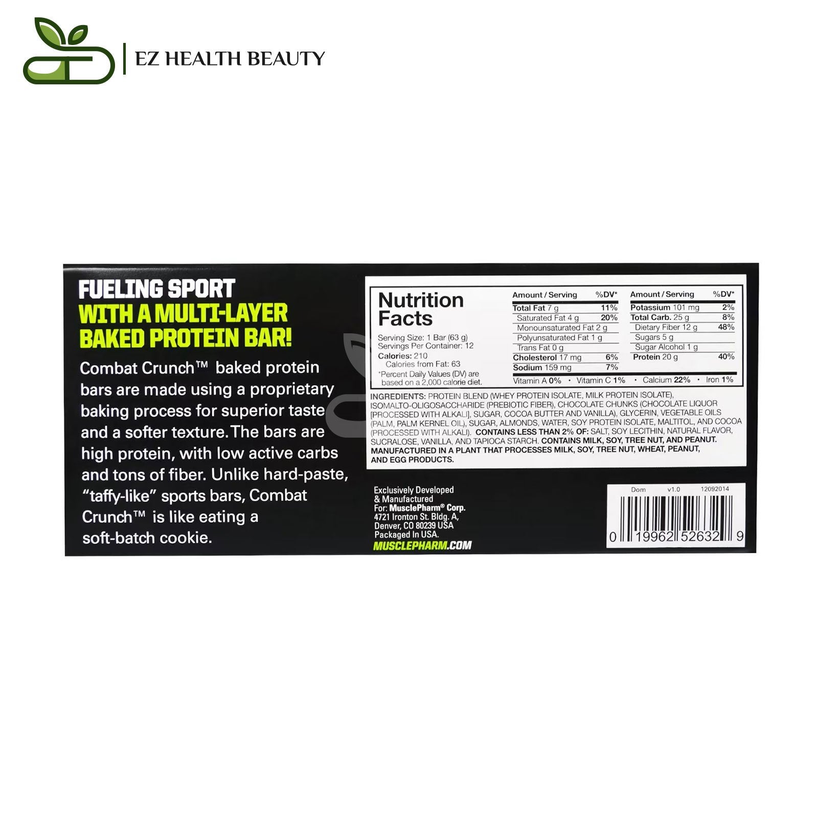 The Combat Crunch Chocolate Cake Protein Bars are specially baked and innovative for the best taste and crisp texture, MusclePharm Hybrid Series Combat Crunch Chocolate Cake is high in protein and contains a high percentage of fiber, and it contains a high percentage of carbohydrates, unlike large doughs, these options are an option A nutritious favorite for athletes; Combat Crunch is like a soft, crunchy, delicious cookie.