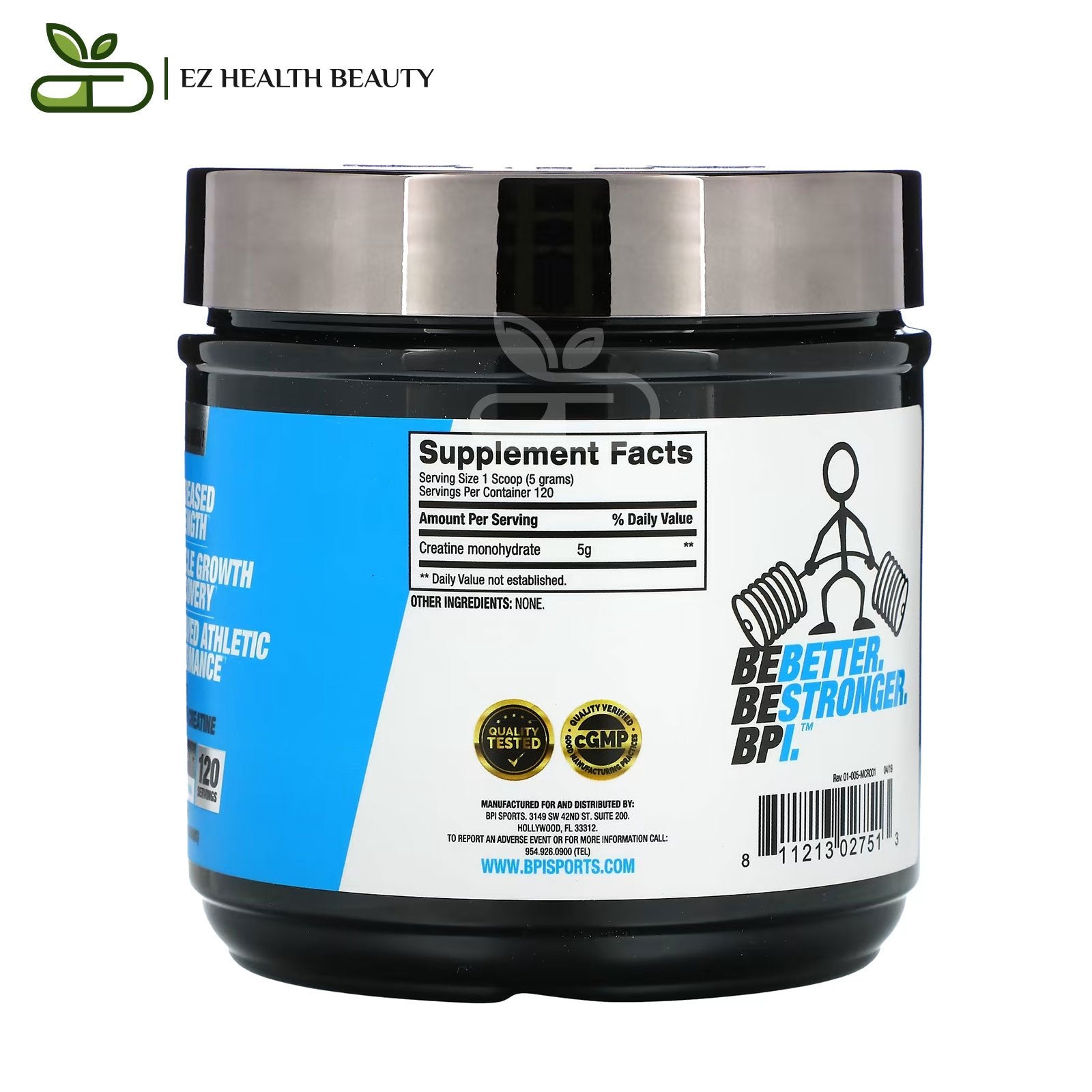 BPI Sports Micronized Creatine Muscle Builder uses 100% pure, pharmaceutical grade micronized creatine for optimum absorption and potency. Micronized Creatine helps increase muscle growth, strength, And Athletic performance. It also helps boost cellular energy, reduce fatigue, and improve recovery. Micronized Creatine can be supplemented from B.P.I. BPI Sports recommends all types of drinks before, during, or after training for an added benefit.
