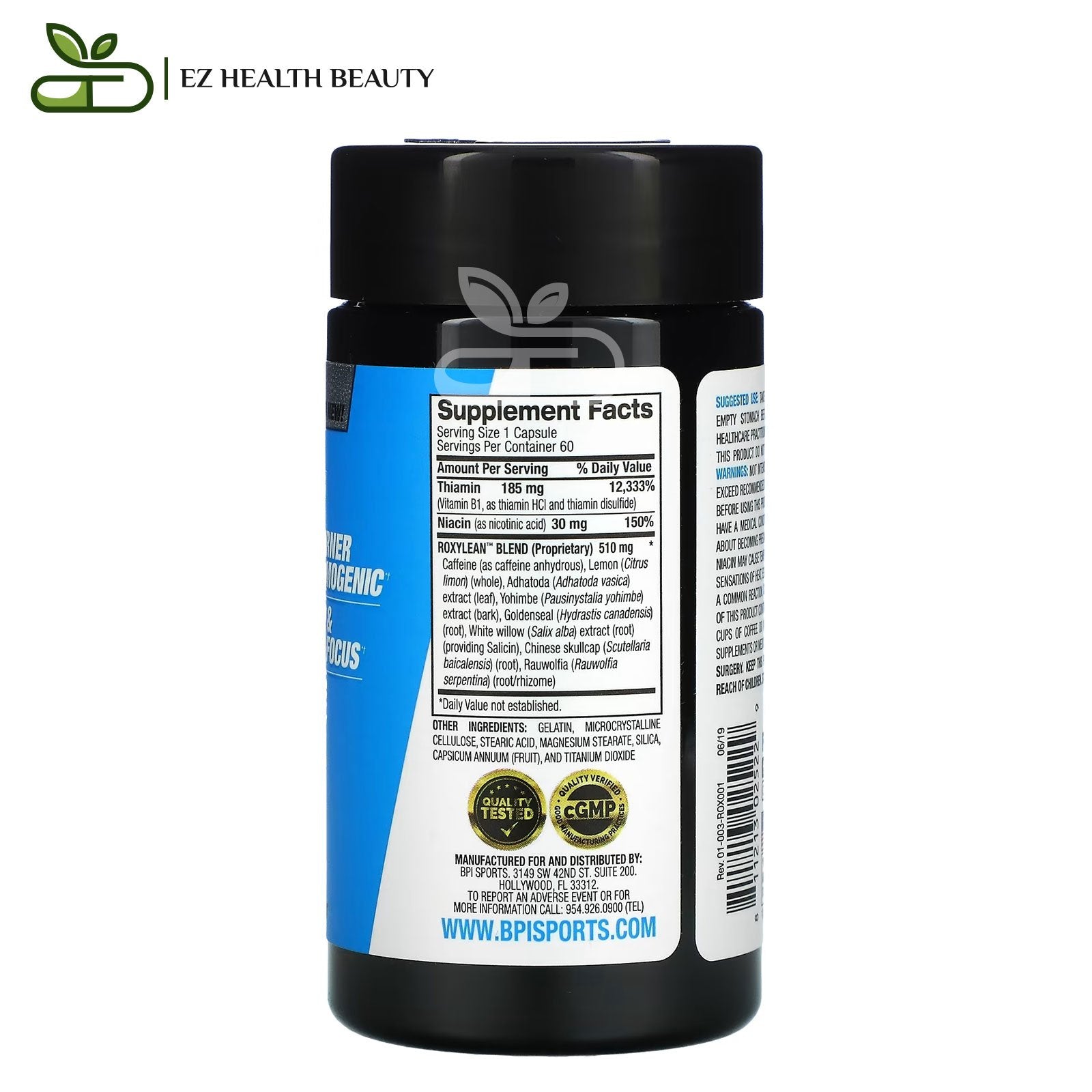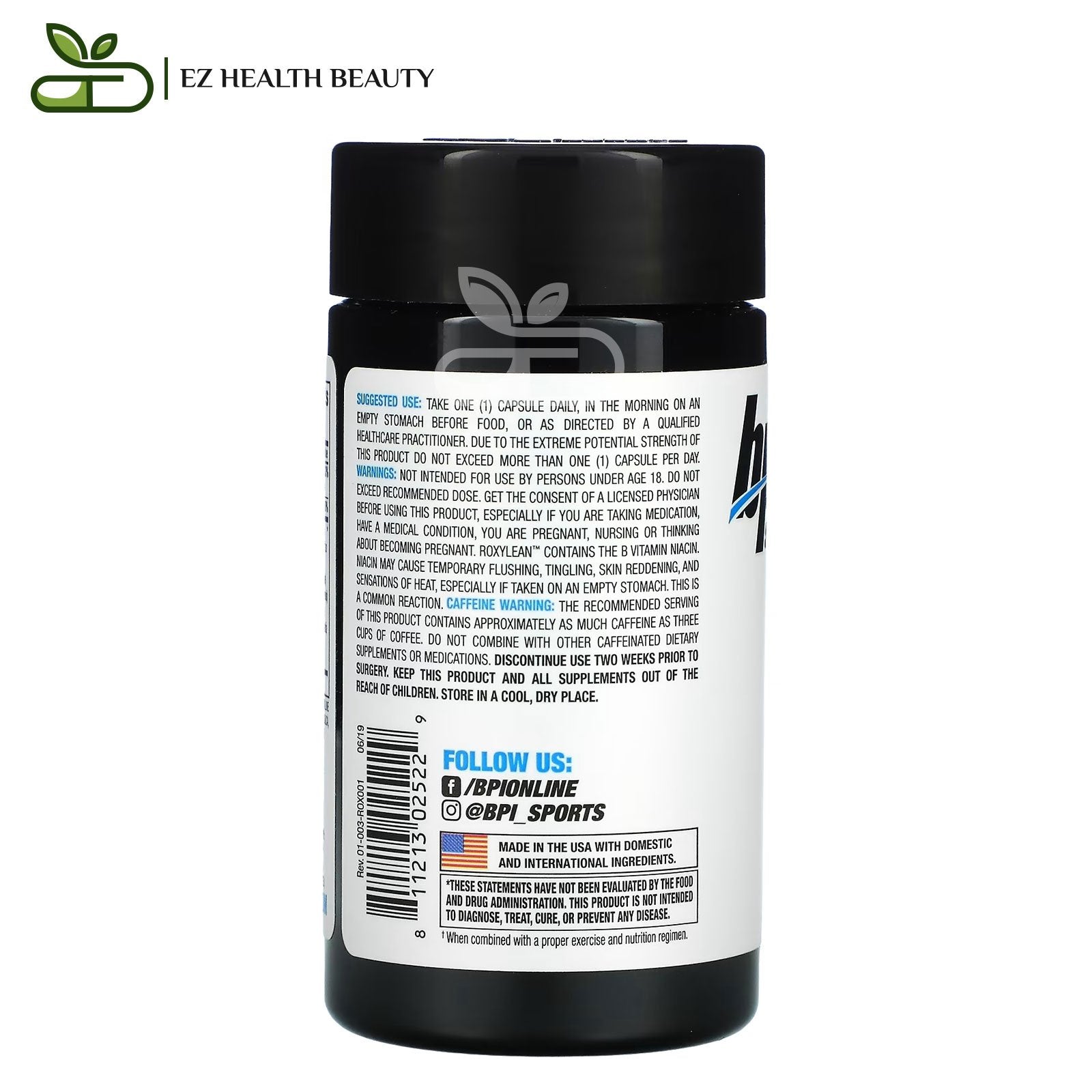 BPI Sports RoxyLean fat burner contain Gelatin, microcrystalline cellulose, stearic acid, magnesium stearate, silica, capsicum annuum (fruit), and titanium dioxide, ROXYLEAN™ BLEND (proprietary), caffeine (as caffeine anhydrous), limon (citrus) (whole plant), malabar nut (adhatuda fasica) extract (leaf), yohimbe (yohimbe pediculum) extract (bark), goldenseal (hydrastis canadensis) (root) , white willow (Salix alba) extract (root) (providing salicin), scutellaria sinensis (Chinese skullcap) (root), Antidote Pepper (Rauwolfia vomer) (root/rhizome). You may also like: Applied nutrition green tea fat burner soft gels – 90 soft gelsBenefits of BPI Sports RoxyLean fat burner